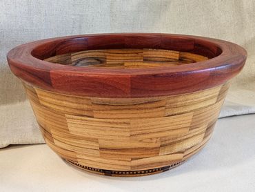 Segmented exotic wood bowl.